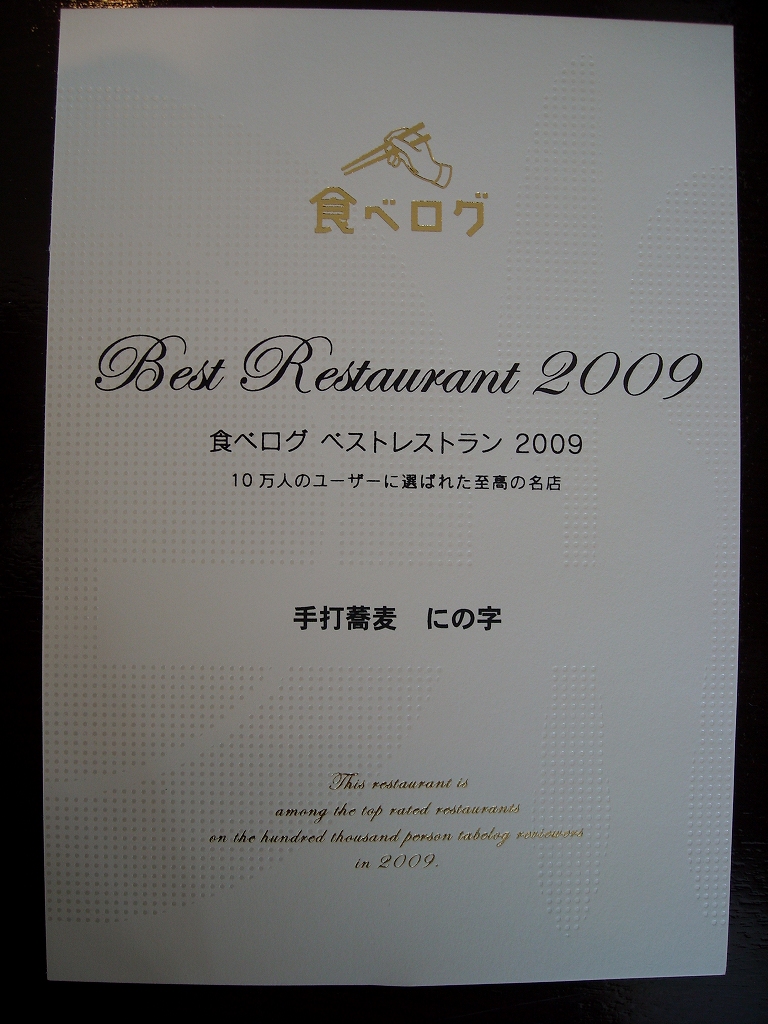 後であらためて『食べログ』を見てみると、ありました!2009年ベストレストランランキング!!